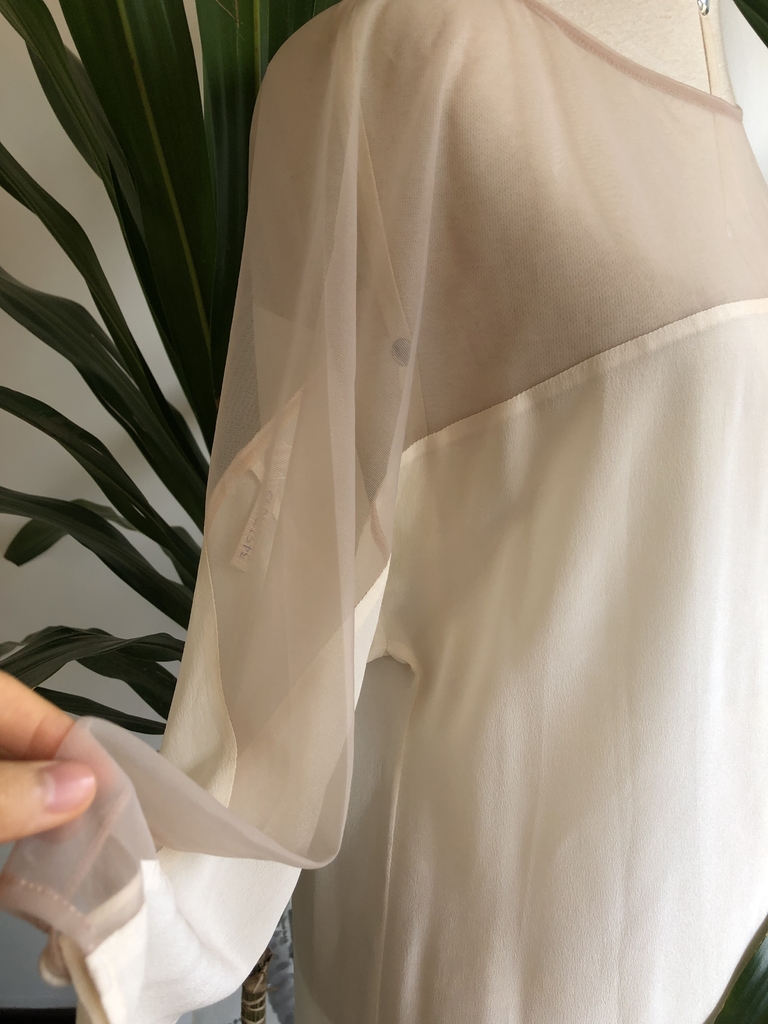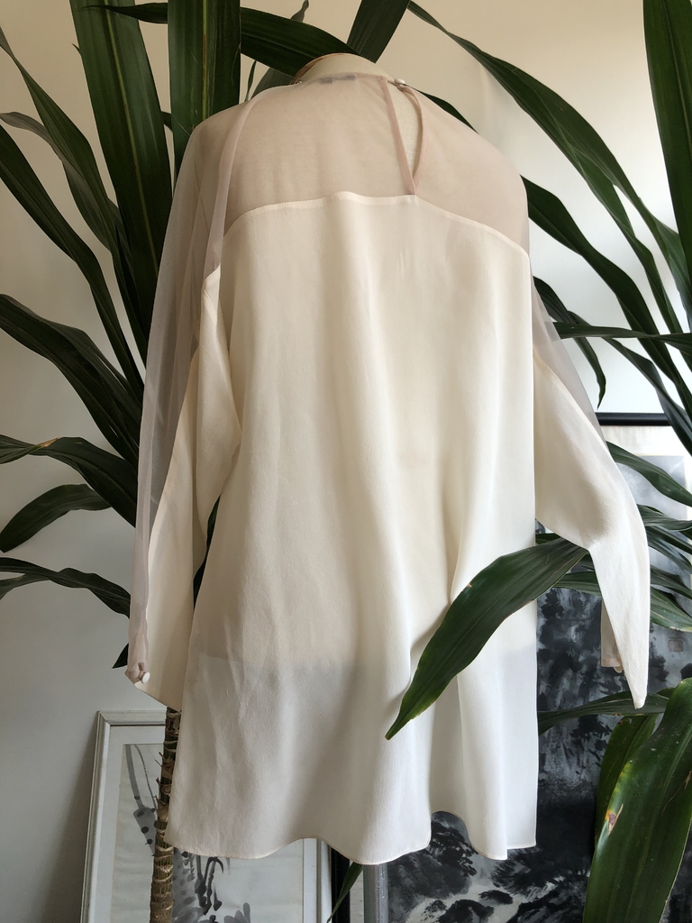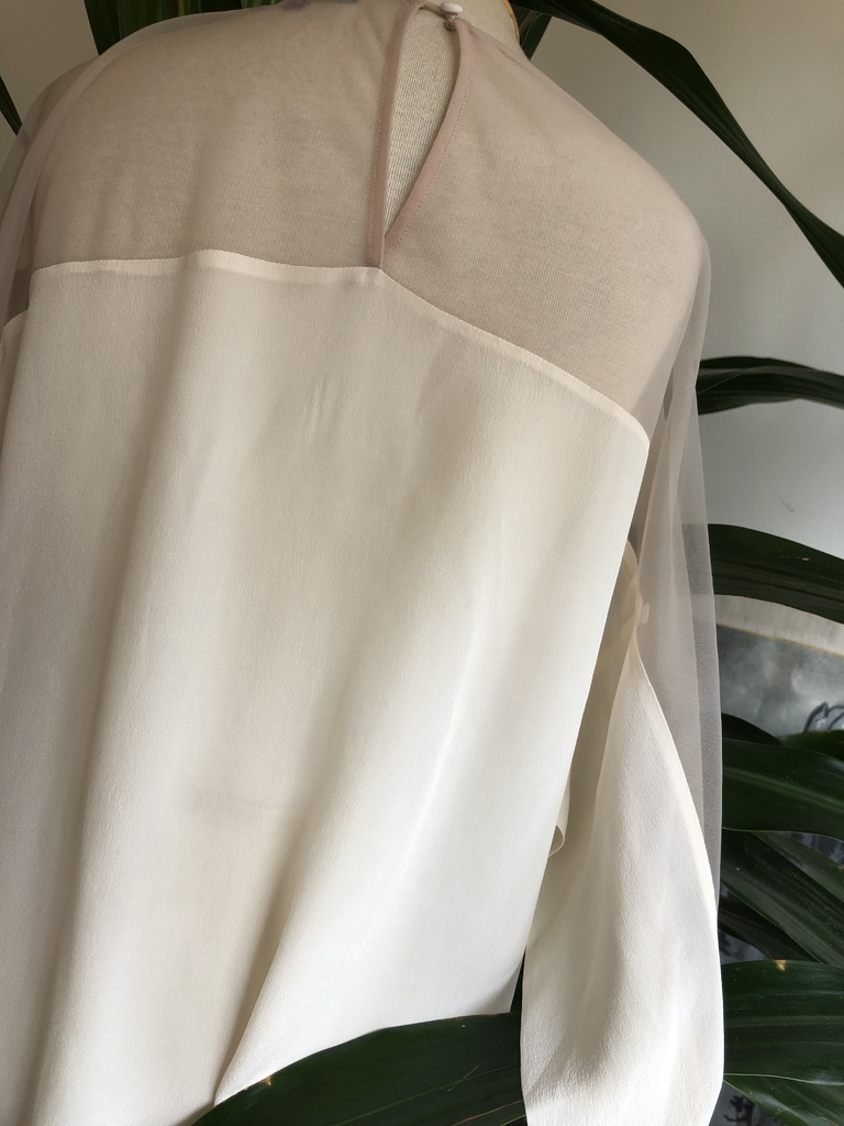 Blusa creme de seda com mangas em poliéster creme também, lindo modelo, marca Mixed