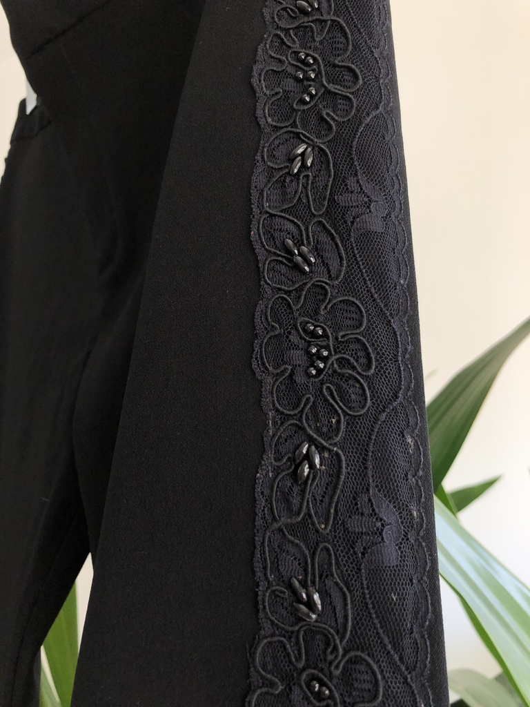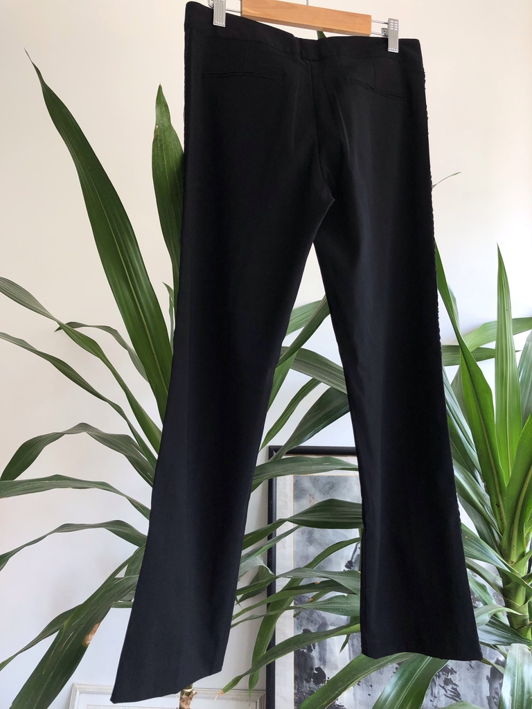 Calça preta 60% acetato 37% poliamida 3% elastano com detalhe lateral de passamanaria, belo! Da extinta grife Aquarela do estilista Jorge Kaufmann Tam M Cintura 72 cm Quadril 96 cm Comprimento 92 cm