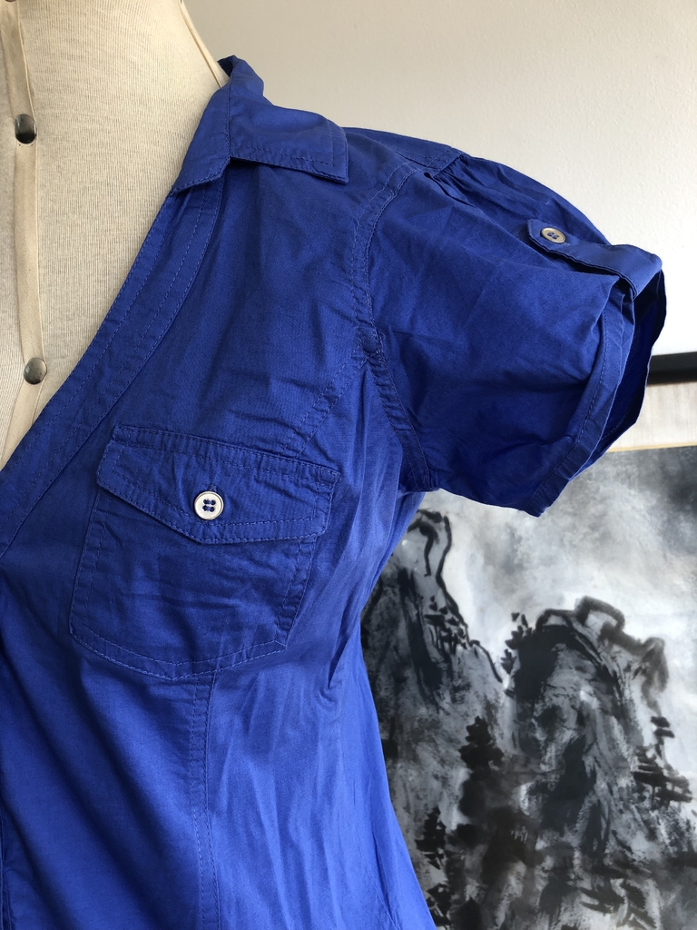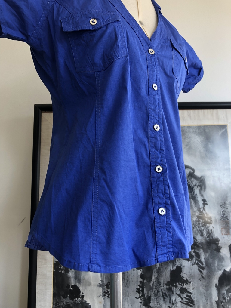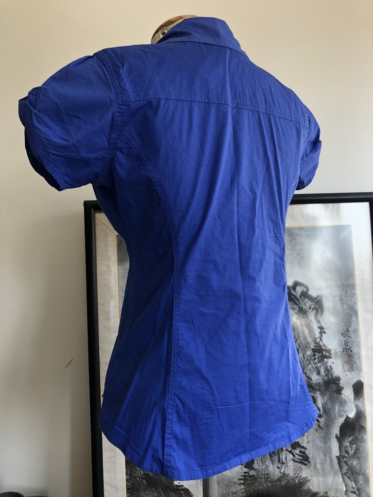 Camisa azul cobalto mangas curtas, modelagem fit, 96% algodão 4% elastano, em estado de novo ou novo