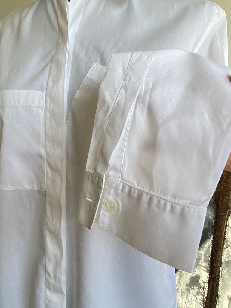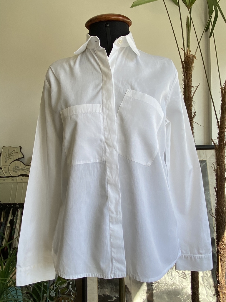 Camisa em algodão e viscose, ultra macia, com detalhe de bolsos desiguais, mangas longas, em ótimo estado da marca Maria Bonita Tam 42 Busto 109 cm Cintura 104 cm Comprimento 65 cm