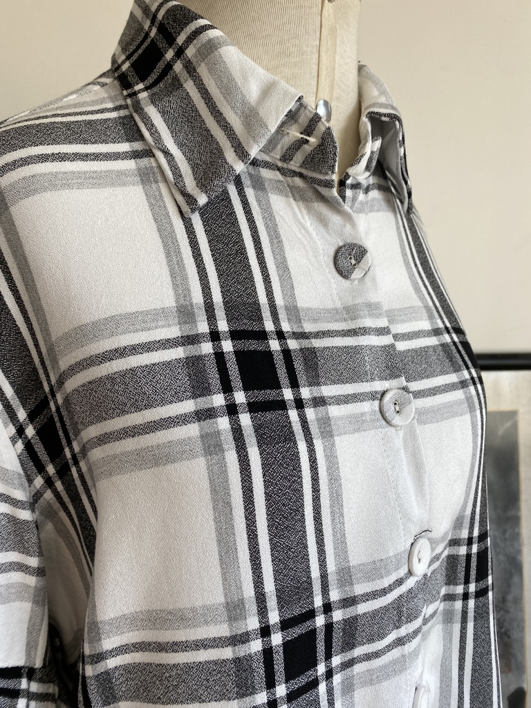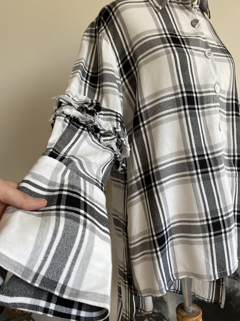 Camisa xadrez 87% viscose 13% modal em um modelo lindo, com a parte de trás bem mais longa e babados nos braços, em ótimo estado da marca Tigresse de Renata Figueiredo Tam M Busto 108 cm Cintura 116 cm Comprimento 89 cm