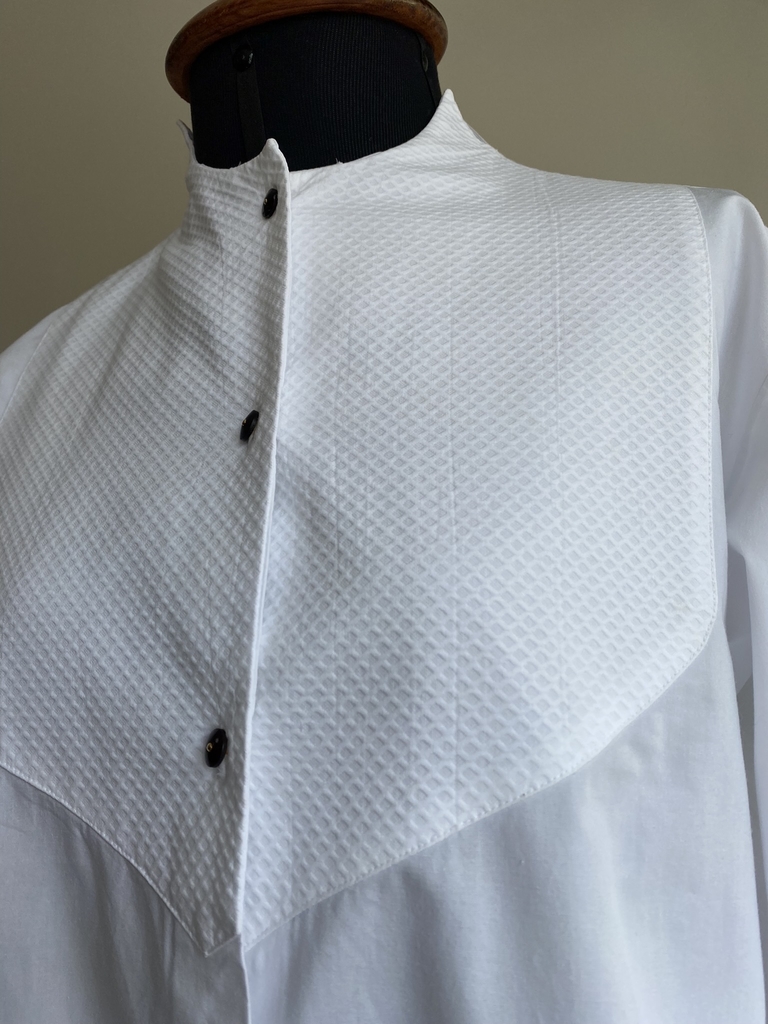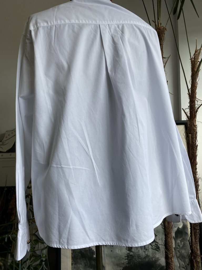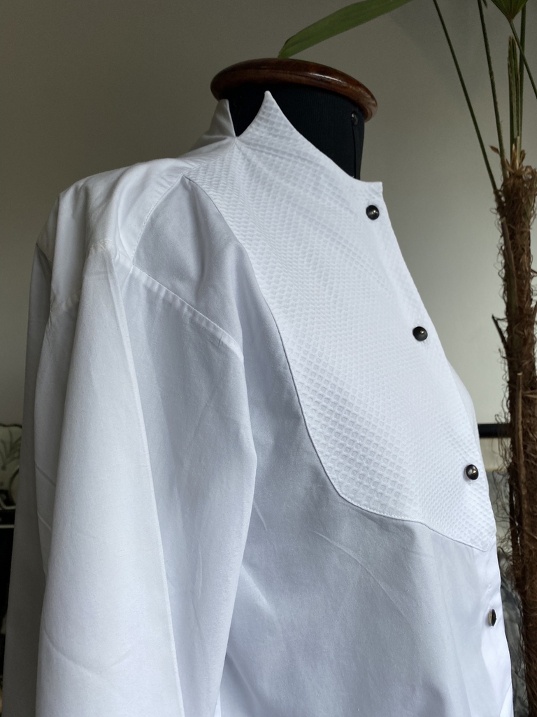 Camisa branca em 100% algodão modelo smoking com a parte do peito em tecido de piquê, botõezinhos pretos diferenciados, marca Huis Clos Tam M Busto 108 cm Cintura 108 cm Comprimento 68 cm